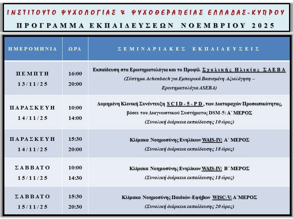 Νέος κύκλος εκπαιδεύσεων στα ψυχομετρικά test. Παρακάτω θα βρείτε αναλυτικά το πρόγραμμα.